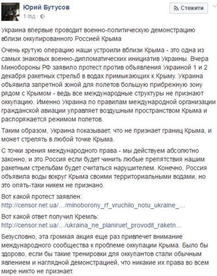 Бутусов назвал намерение Украины провести 1 и 2 декабря в воздушном пространстве Крыма ракетные стрельбы "одной из самых знаковых военно-дипломатических инициатив Украины".
