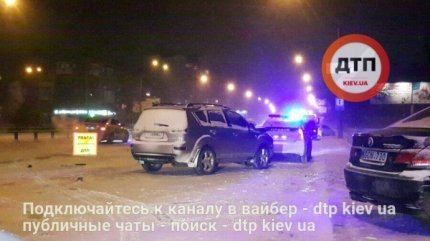 В Киеве на проспекте Победы в ночь перед Рождеством пьяный водитель Mitsubishi Galant устроил аварию.