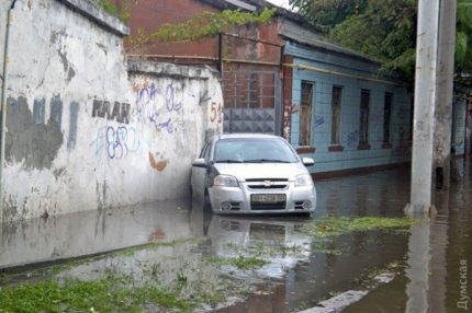 Дворы со стороны улицы Черноморского Казачества также подтоплены. Из-за обрыва проводов не ходит "камышовый" трамвай.