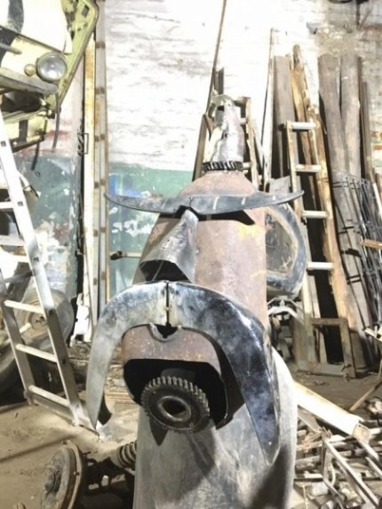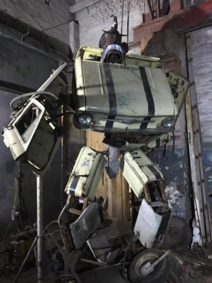 В Одессе художник Александр Милов, который прославился своими скульптурами исполненными из труб, создал трансформера-«украинца», используя детали старых автомобилей.