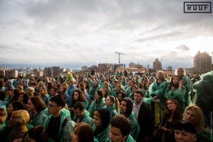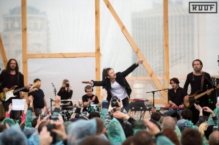 Примечательно, что плохая погода не могла остановить "Океан Эльзы", и выступление началось вовремя. Но как только фронтмен группы Святослав Вакарчук вышел на сцену, дождь сразу закончился и выглянуло солнце.