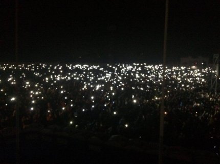 На стадионе "Авангард" в Краматорске Донецкой области состоялся последний в нынешнем году бесплатный концерт легендарной украинской группы "Океан Эльзы", на который, по данным СМИ, на стадионе собралось около 50 тысяч человек.