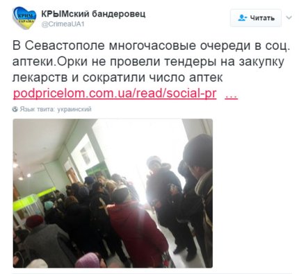 Оккупационные «власти» в Севастополе в аннексированном Крыму не провели тендер на закупку лекарств, что привело к огромным очередям в социальные аптеки.