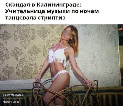 В связи с таким заявлением российского премьера, журналист опубликовал скриншот новости, заголовок которой гласит: "Скандал в Калининграде: Учительница музыки по ночам танцевала стриптиз".
