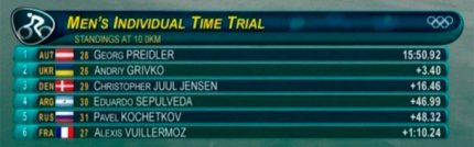 18:44. мужская велогонка с раздельным стартом подходит к концу. Осталось финишировать семи гонщикам, которые и разыграют медали. Лучшее время по ходу дистанции показывает знаменитый швейцарский велогонщик Фабиан Канчеллара