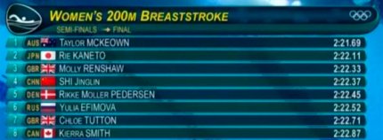 20:01. определились полуфиналистки на дистанции 200 метров брассом среди женщин