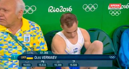 23:30. Олег Верняев выполнил опорный прыжок, который судьи оценили 15.500 баллами. Молодчинка