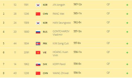 19:40. корейский стрелок Джонго Джин выиграл олимпийское "золото" в стрельбе из пистолета с 50 метров. Серебряным призером стал вьетнамец Ксуан Винь Хоанг. А третье место занял стрелок из КНДР Сонг Гук Ким
