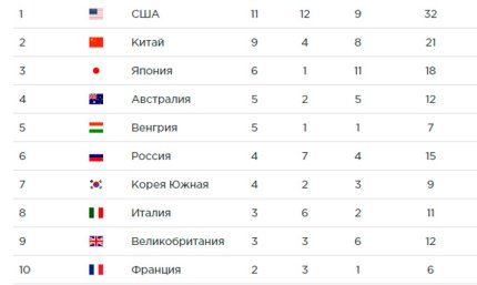 6:12. и таблица медалей по итогам пяти дней Олимпиады