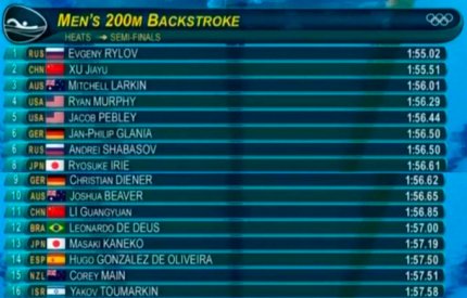 19:51. состоялись квалификационные заплывы в плавании на дистанции 200 метров на спине среди мужчин