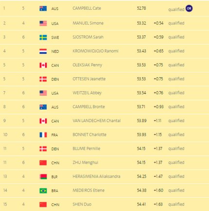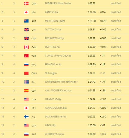 19:26. определились полуфиналистки на дистанции 100 метров вольным стилем среди женщин