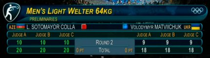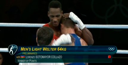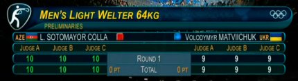 23:52. наш боксер Володя Матвийчук начал бой против кубинского боксера, выступающего за Азербайджан, Лоренцо Сотомайора Колласо