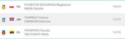 17:35. олимпийскими чемпионками в заезде парных двоек стали польские гребчихи Магдалена Фуларчик-Козловска и Наталия Мадай. "Серебро" у британок Виктории Торнли и Кэтрин Грайнгер. "Бронза" - у литовских гребчих (Доната Вистартайте и Мильда Вальчюкайте)
