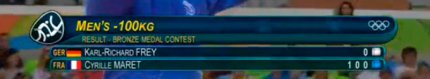 23:07. бронзовым призером стал французский дзюдоист Сирилль Марэ, выиграв иппоном у немца Карла Ричарда Фрая