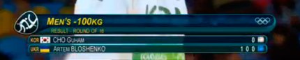 18:17. даааааааааааааааааааа!!!!!!! Наш Артем Блошенко иппоном на второй минуте победил корейского дзюдиста Гу Ам Чо и вышел в четвертьфинал