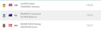 18:57. олимпийскими чемпионками в распашной двойке стали британки Хелен Гловер и Хизер Стэннинг. "Серебро" у новозеландок Женевью Беэрент и Ребекки Скоун. "Бронза" у датчанок Хедвиг Расмуссен и Анне Андерсен