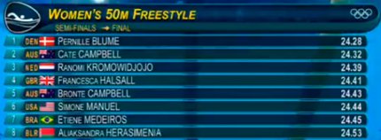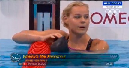 5:46. второй полуфинал женской 50-метровки вольным стилем выиграла датчанка Пернилла Блум