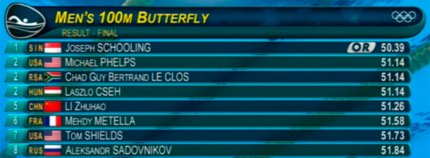5:03. кстати, это "серебро" - третье в карьере Фелпса. Завтра Майкл таки получит шанс завоевать 23-е "золото". В эстафете 4х100 метров комплексом