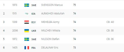 19:35. наш стрелок Павел Коростылев идет на промежуточном третьем месте после первой части квалификации в стрельбе из скоростного пистолета с 50 метров. Результат Павла - 293 очка (96,99,98). У Романа Бондарука 15-е место. Но впереди еще вторая часть квалификации