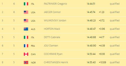 4:51. олимпийским чемпионом стал американец Адриан Эрвин, второй - француз Флолан Маладу, третий - Натан Эдриан. Говоров - пятый