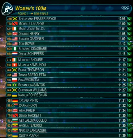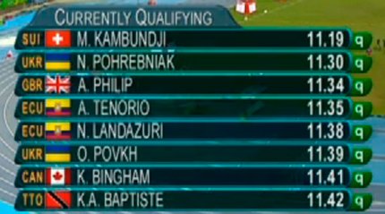 5:30. наши спринтеры Олеся Повх и Наталья Погребняк пока попадают в полуфинал. Но впереди еще три квалификационных забега на 100 метров