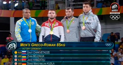 23:16. белорус Джавид Хамзатов завоевал бронзовую медаль, выиграв схватку против Байрякова со счетом 4:1