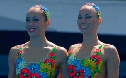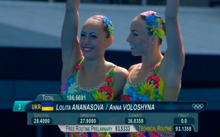 18:23. "Маруся раз, два, три, калина, чорнявая... дiвчина в саду ягоди рвала" - наши синхоронистки Ананасова и Волошина выступили на Олимпиаде под украинскую народную песню
