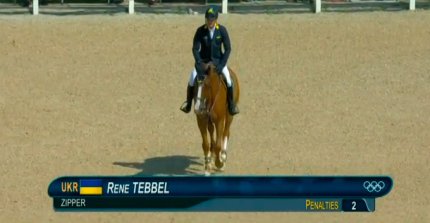 18:51. всадник Рене Теббель, представляющий Украину, выполнил третий выезд в конкуре. Рене уверенно прошел дистанцию, заработав только два штрафных балла за превышение лимита времени