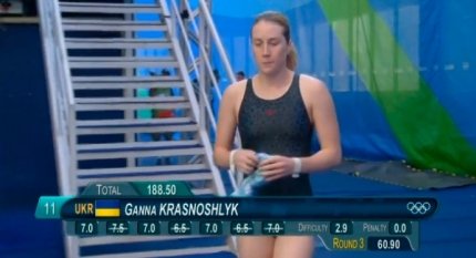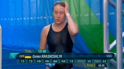22:13. наша прыгунья в воду Анна Красношлык за второй прыжок получила 66.00 баллов