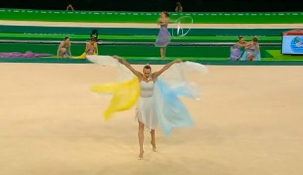 20:12. на гала-шоу гимнастики наша художественная гимнастка Анна Ризатдинова выполнила танец под аккомпанемент песни 1944, с которой Джамала выиграла Евровидение-2016