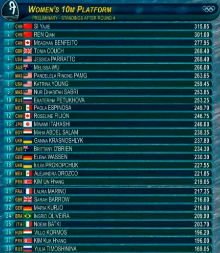 23:43. все полуфиналистки в прыжках в воду с 10-метровой вышки среди женщин