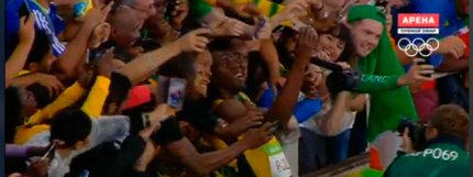 4:48. традиционное селфи Болта с болельщиками