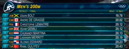 4:53. официальные результаты спринта на 200 метров