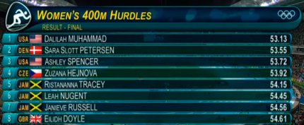 4:34. официальные результаты бега на 400 метров с барьерами