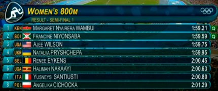 3:27. Наталья Прищепа также не попадает в финал за добором, поскольку участницы второго забега пробежали быстрее