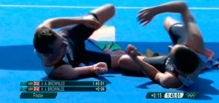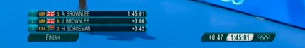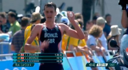 18:36. мужские соревнования по триатлону приближаются к развязке. Лидируют братья Браунли из Великой Британии. Причем старший Алистер опережает младшего Джонатана на 15 секунд