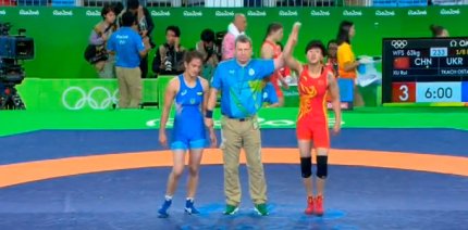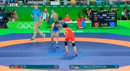 17:16. начался поединок в женской борьбе между Юлией Ткач Остапчук и китаянкой Ксю