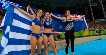 4:38. гречанка Екатерини Стефаниди завоевала золотую медаль в прыжках с шестом (4.85 м). Вторая - американка Санди Моррис (4.85 м), а "бронза" у новозеландки Элизы МакКартни (4.85 м)