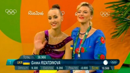 17:07. Анна Ризатдинова за упражнения с обручем получила 18.400 баллов и идет на первом месте