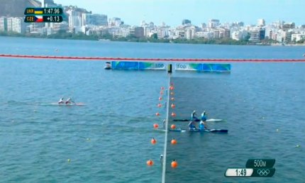 16:40. стартовали наши девушки в заезде байдарок-четверок на 500 метров