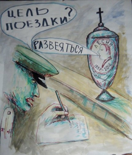 Так, блогер David Homak в Twitter выложил рисунок с урной, в которую обычно помещают прах умерших после кремации, с подписью «Лесин», перед пограничником, заполняющим миграционную карту.