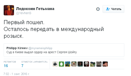 Печерский районный суд Киева выдал разрешение на задержание министра обороны России Сергея Шойгу.