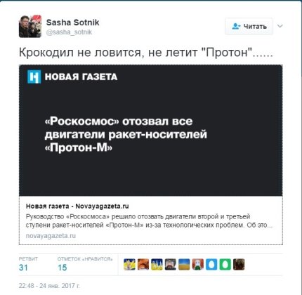 Руководство "Роскосмоса" решило отозвать двигатели второй и третьей ступени ракет-носителей "Протон-М" из-за технологических проблем, что вызвало смех в социальных сетях.