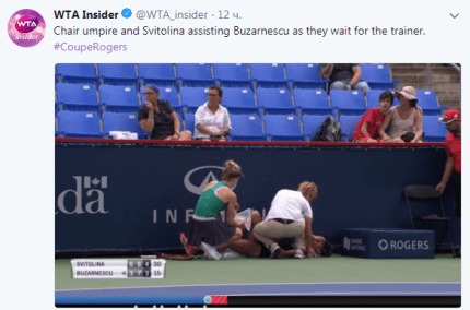 Во время Открытого чемпионата Канады в матче между Элиной Свитолиной и Михаэлой Бузарнеску, соперница первой ракетки Украины серьезно травмировал правый голеностоп, передает ONLINE.UA со ссылкой на WTA_insider.