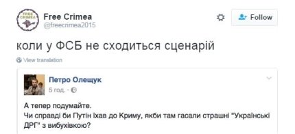 "А теперь подумайте. Действительно ли Путин ехал бы в Крым, если бы там носилась страшная "украинская ДРГ" со взрывчаткой?", - написал он.