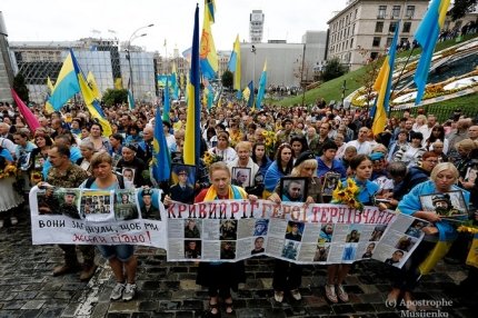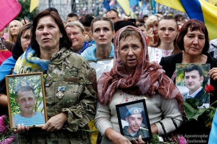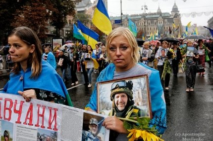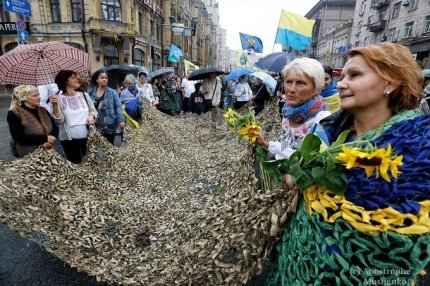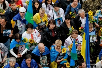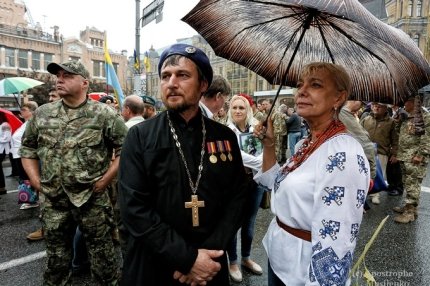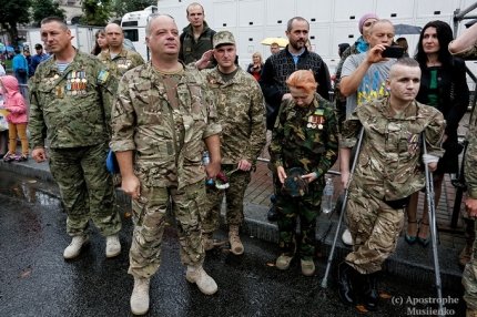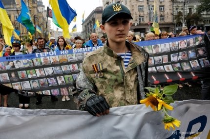 Помимо военного парада, приуроченного ко Дню Независимости Украины, в Киеве прошел "Марш непокоренных", в котором приняли участие волонтеры, военные медики, бойцы добровольческих батальонов, а также члены семей погибших на Донбассе бойцов и родственники Героев Небесной сотни.