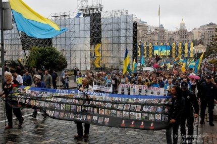 Организаторы отметили, что марш не является противопоставлением государственному митингу или военному параду, но в то же время заявили о недопустимости присутствия политиков на мероприятии. Таким образом, организаторы шествия почтили память всех военнослужащих, погибших за два года войны на Донбассе, а также всех погибших героев Революции достоинства.