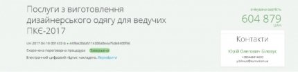 Ателье Indposhiv получило за пошив одежды около 605 тысяч гривень, причем договор был заключен по результатам закрытого конкурса, а количества сшитой одежды указано не было.
