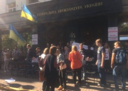 В Киеве возле здания Генеральной прокуратуры общественные активисты и народные депутаты проводят акцию в поддержку Национального антикоррупционного бюро Украины.
