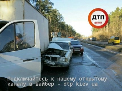 Утром 28 декабря на трассе под Киевом столкнулись 5 авто.
